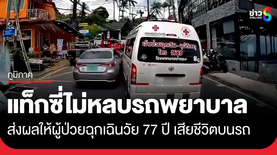 อีกแล้ว! แท็กซี่ภูเก็ตขวางและเฉี่ยวชนรถพยาบาล ส่งผลให้ผู้ป่วยฉุกเฉินวัย 77 ปี เสียชีวิตบนรถ แม้ทีมแพทย์ฉุกเฉินจะช่วยกันพยายามปั๊มหัวใจผู้ป่วย แต่ไม่สามารถยื้อชีวิตไว้ได้