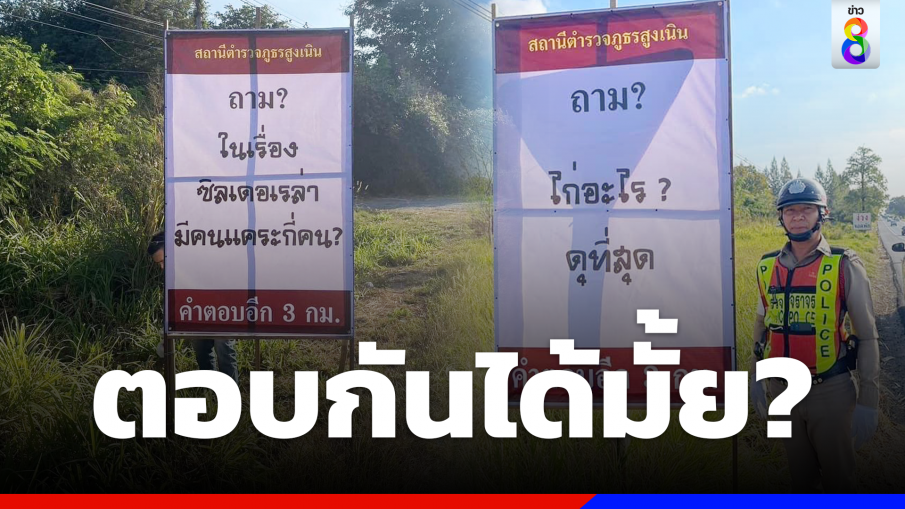 ผุดไอเดียป้ายแก้ง่วงอีก! ตำรวจสูงเนินไอเดียบรรเจิดติด "ป้ายแก้ง่วง" เป็นป้ายปัญหาเชาว์ หวังลดอุบัติเหตุ ตอบกันได้มั้ย?