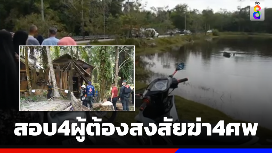 ตำรวจคุม 4 ผู้ต้องสัย มาสอบสวน ว่ามีความเกี่ยวข้องฆ่าโหด 4 ศพ นราธิวาสหรือไม่ เบื้องต้นให้น้ำหนักไปที่ประเด็นยาเสพติด