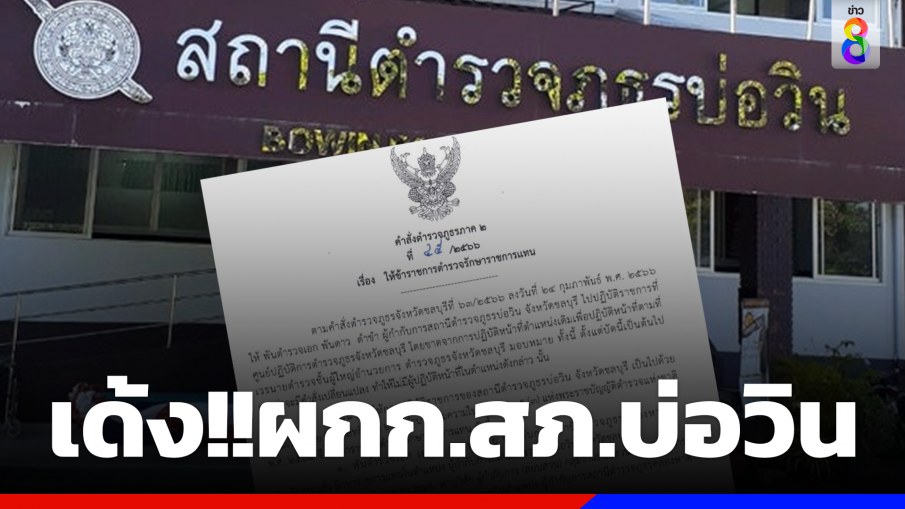 มีคำสั่งเด้ง "ผกก.สภ.บ่อวิน" ไปปฏิบัติราชการศปก.ภ.จว.ชลบุรี พร้อมตั้งกรรมการสอบข้อเท็จจริง ปมพัวพันเว็บไซต์พนัน Saipay69
