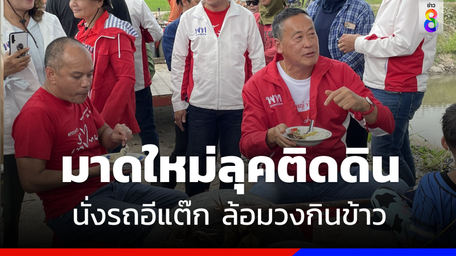 มามาดใหม่ลุคติดดิน! "เศรษฐา" ลุยต่างจังหวัดครั้งแรก นั่งรถอีแต๊กจับเข่าคุย-ล้อมวงกินข้าว ฟังปัญชาวนา กลางทุ่งผักไห่ อยุธยา มั่นใจ "เพื่อไทย" เป็นรัฐบาลทำให้ชาวนามีเงินเข้ากระเป๋าถึงมากถึง 3 เท่า
