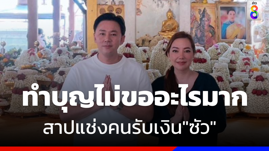 พร้อมขอความระบุว่า วันนี้มาทำบุญไม่ขออะไรมาก ขอสาบแช่งใครที่เคยรับเงินชั่วของแก๊งสารวัตรซัว แสร้งทำเป็นโจรกลับใจ รับผลกรรมโดนยึดทรัพย์หมดตัวทั้งตระกูลกลายเป็นคนไร้ต้นทุนจริงๆ สมพรปากทีเถอะสาธุ