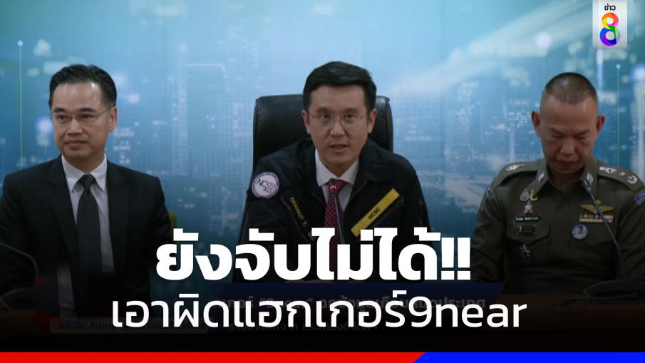 "รมว.ดีอีเอส-ตำรวจไซเบอร์" ตั้งโต๊ะแถลง รู้ตัวแฮกเกอร์ 9 near แล้ว พบเป็นทหารยศจ่าสิบโท ยังไม่สามารถจับตัวผู้ทำผิดได้ ออกหมายจับแล้ว1คน