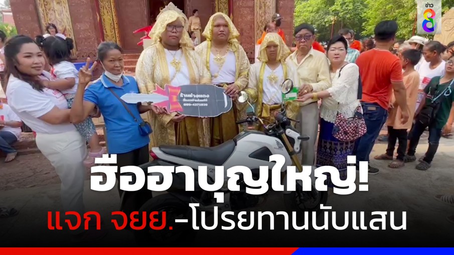 ฮือฮา! งานบวช พ่อนาคเจ้าภาพใจถึงโปรยทานนับแสนบาท พร้อมจักรยานยนต์ 1 คัน ชาวบ้านรู้ข่าวแห่มาร่วมงานแน่นวัด
