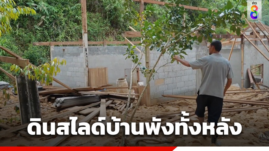 นายเฉลิมพร เพชรคง อายุ 45 ปี ชาวบ้าน บ้านผมเด็น ตำบลไม้ฝาด อำเภอสิเกา จังหวัดตรัง พาผู้สื่อข่าวไปดูสภาพบ้านชั้นเดียว ที่ถูกมวลน้ำ และ ดิน จากสันควนกุน สไลด์ลงมาถล่มบ้านพังยับเยินทั้งหลัง ผนังปูนซีเมนต์แตกหลุดออกเป็นชิ้น ๆ ประตู หน้าต่าง ถูกน้ำพัดจนกองระเนระนาด ภายในบ้านมีน้ำขัง และ มีก้อนหินน้อยใหญ่กองอยู่ด้านใน แถมบ่อปลา ยังเสียหายอีก 1 บ่อ และ สภาพโดยรอบ มีแต่ก้อนหินน้อยใหญ่ทับถมเป็นลานกว้าง