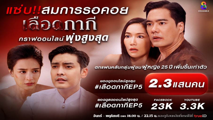 แซ่บสมการรอคอย "เลือดกากี" กราฟออนไลน์พุ่งสูงสุด ตกแฟนคลับกลุ่มผู้ชมผู้หญิง 25 ปี เพิ่มขึ้นเท่าตัว