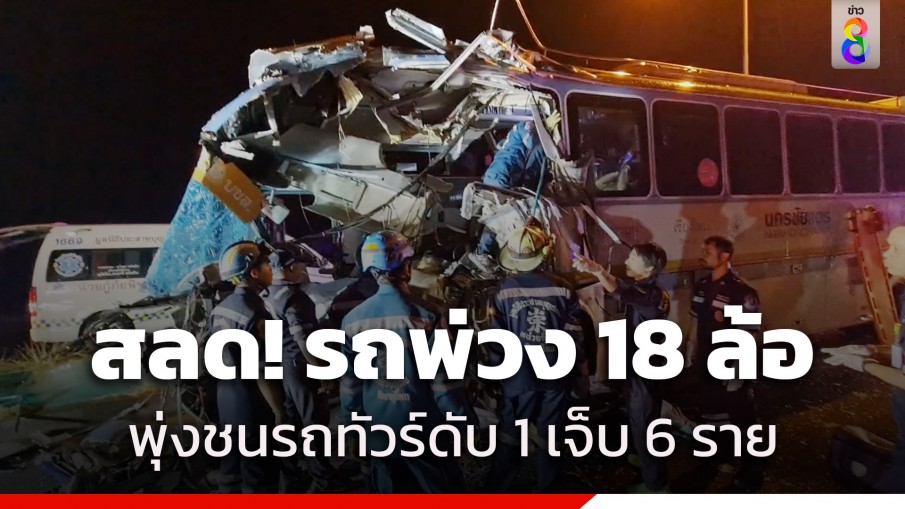 เกิดเหตุรถพ่วง 18 ล้อ หักยูเทิร์นไม่พ้นลูกพ่วงสะบัดไปชนรถทัวร์นครชัยแอร์ แพร่- กรุงเทพ รับผู้โดยสารมาจากต้นทาง 32 ราย มีผู้เสียชีวิต 1 ราย บาดเจ็บ 6 ราย