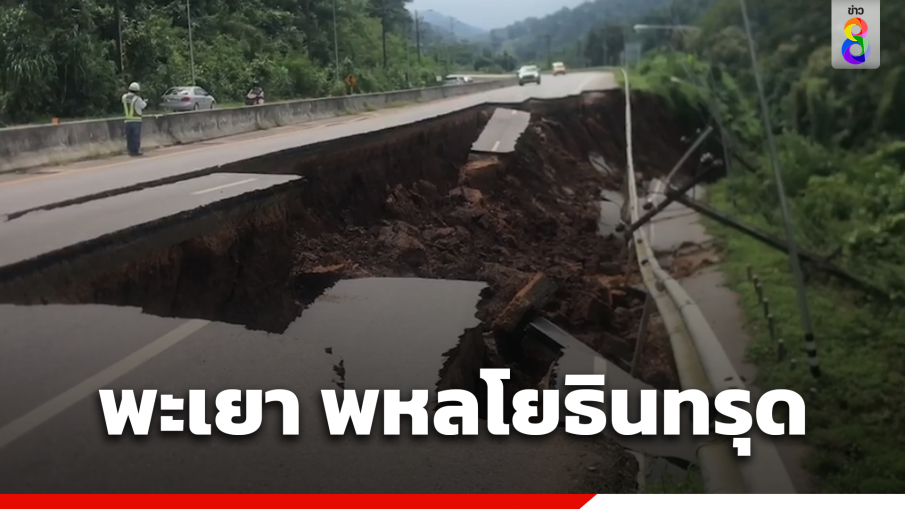 ถนนพหลโยธิน พื้นที่ตำบลแม่กา อำเภอเมือง จังหวัดพะเยา ทรุดเป็นระยะทางกว่า 50 เมตร เหลือสัญจรได้ฝั่งเดียว