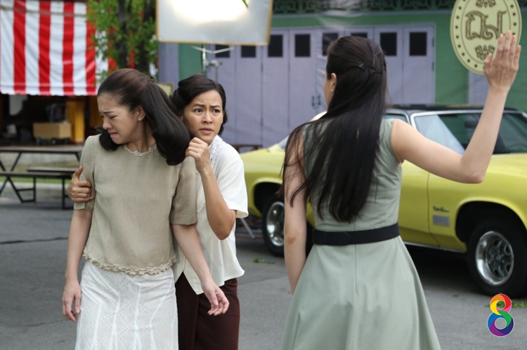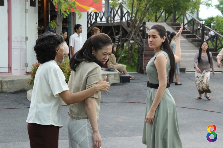 ฉากนี้ ถ่ายทำที่ ชมเฌย สตูดิโอ ย่านนนทบุรี เป็นฉากที่ 2 สาวต้องปะทะคารมณ์กันอีกแล้วจ้า แต่งานนี้ แป้งของขึ้น เดือดปุดๆ จนต้องฮึดสู้ เพราะถูกณฉัตร ด่าว่าเป็นลูกเมียน้อย ถึงเวลา ผู้กำกับ ทรงศักดิ์ มงคลทอง ก็เรียกทุกคนมาซ้อมคิวต่อบทกัน แต่บทหนักเทไปอยู่ที่ แป้งและณฉัตรมากกว่า งานนี้ คนชั่วโมงบินสูงอย่าง แป้ง ก็จะดูชิลๆ หน่อย ห่วงก็แต่ณฉัตร ที่พอเห็นบทพูดแล้ว ถึงกับหงายเก๋ง เพราะไหนจะ แอ็คติ้ง ไหนจะบท แล้วต้องตบนักแสดงรุ่นพี่อีก ทำให้ณฉัตรเครียด จนแป้งอาสามาติวให้ด้วยตัวเองเลย หลังจากที่ แป้งบิ้วณฉัตรจนองค์แม่ลงแล้ว ถ่ายจริง แป้งและเฟรช เดินเข้ามาถามณฉัตรด้วยความเป็นห่วง ทั้งคู่ปะทะฝีปากกันไปมาอย่างดุเดือด สุดท้ายณฉัตรกลับไม่รับความหวังดี แถมด่าแป้งว่า ก็เป็นแค่อีลูกเมียน้อย ทำให้แป้งโกรธตัวสั่น น้ำตาคลอ ตบณฉัตรจนหน้าหัน ณฉัตรโกรธมองตาขวาง กำลังจะเข้ามาตบแป้งคืน แต่ก็โดนเอกชัย และไอซ์จับแยกไป เรียกว่ากว่าอินเนอร์จะแรงโดนใจผู้กำกับ ก็ทำเอาณฉัตรหมดแรงจนต้องพึ่งยาดมเลยทีเดียว ติดตามชมฉากนี้ได้ใน วันจันทร์ที่ 25 กันยายน นี้ เวลา 20.30 น. ทางช่อง 8 กดเลข 27