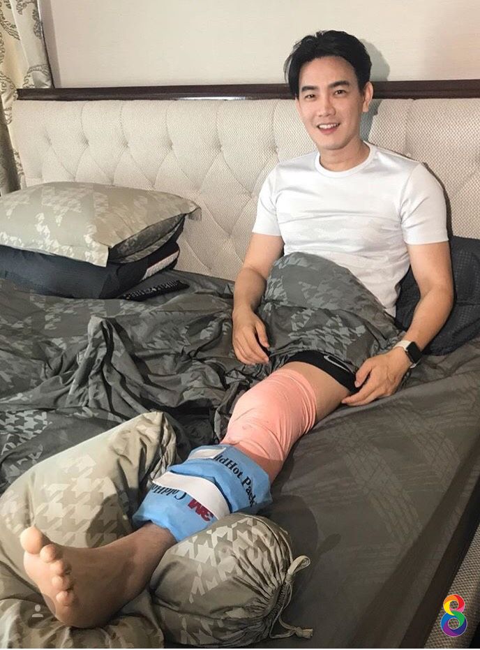 “ครับพอดีหลังจากคุณหมอให้ออกจากโรงพยาบาลและกลับมารักษาตัวที่บ้านต่อ อย่างที่ทราบคุณหมอบอกว่า กว่าจะกลับมาเดินได้ปกติต้องใช้เวลากว่า 2 เดือน เลยทีเดียว และจะออกกำลังกายได้ปกติก็หลังจาก 9 เดือนไปแล้วอ่ะครับ ด้วยความที่ผมก็เป็นนักกีฬา และเป็นคนที่ไม่ชอบอยู่นิ่งด้วย อยากทำนู่นนี่ด้วยตัวเองบ้าง แล้วอีกอย่างละครเรื่องใหม่กับทางช่อง 8 ก็ใกล้เปิดกล้องแล้วด้วย ก็กลัวไม่ทันเพราะเรื่องใหม่จะต้องฟิตหุ่น ถอดเสื้อทั้งเรื่องอีกด้วย และใจจริงก็ไม่ค่อยอยากรบกวนคุณภรรยาเค้ามาก ผมก็พยายามกายภาพออกกำลังแขนขานิดหน่อยเองครับ ให้เหมือนได้ขยับบ้าง ด้วยความที่ตัวเองอาจจะรู้สึกว่าออกไม่เยอะ แต่ก็คงดูเยอะไปหน่อย ทำให้แผลฉีก มีน้ำเหลืองไหลออกมา ซึ่งภรรยาก็เตือนแล้วว่าให้อยู่เฉยๆ ไว้ ผมก็ดื้อไปหน่อย เลยทำให้มีน้ำเหลืองไหลออกมา ต้องมาโรงพยาบาลเพื่อล้างแผลและต้องมาประจำครับ ซึ่งคุณหมอก็ได้ให้ยาและทำแผลให้ใหม่โดยไม่ต้องผ่าตัด อาการก็ไม่น่าห่วงครับ คุณหมอให้กลับมาบ้านปกติ แต่ให้นอนอยู่เฉยๆ และตอนนี้นอกจากคุณหมอสั่งแล้ว ถ้าคุณภรรยา สั่งให้ทำอะไรก็คงทำตามที่ภรรยาสั่งแล้วกันครับ ดีซะอีกตอนนี้ได้ใช้ภรรยาทำงานให้เมื่อก่อนโดนใช้ประจำ (ฮาฮ่า) ขอบคุณแฟนๆ คลับทุกคนที่เป็นห่วงนะครับ”