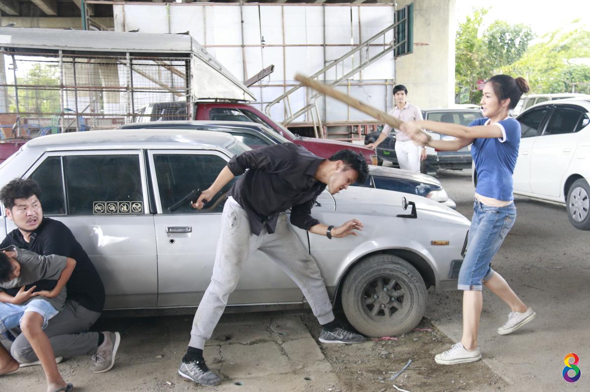 ฉากนี้ ถ่ายที่ กลางชุมชนบึงพระรามเก้า ผู้กำกับ อัครพล บัวแตง ให้ฝ่ายศิลป์เซ็ตลานกีฬาเป็นที่รักษาชาวบ้านของหมออาสา ตูมตามเห็นเข้าก็ชมว่า “โห..เหมือนมาก ผมเคยไปดูแม่ทำ อสม. แบบนี้เลย” อั๊ยยะ..เลือดอาสาแรงจริง ช่วงซ้อมคิวบู๊ ตูมตามฟิตเสต็ปมาดี ซ้อมไม่กี่ครั้งก็ลุยถ่ายจริงได้เลย เริ่มที่ แซนดี้คว้าไม้ท่อนใหญ่บุกเดี่ยว กำลังจะฟาดโจร ตูมตามดั๊นตะโกนเรียก โจรรู้ตัว หันควับ เอาด้ามปืนตีหัวแซนดี้แตก โจรจะซ้ำแซนดี้อีกรอบ ตูมตามสปีดเกียร์สูง วิ่งพุ่งเข้าถีบปืน คุณพระ! เสียงดังแคว่ก มาจากเป้ากางเกงหนุ่มตูมตาม ขาดรูกว้างมโหฬาร เจ้าตัวรีบกุมเป้าแทบไม่ทัน (ฮา) พักกองเย็บเป้าไม่นาน ตูมตามก็บู๊ต่ออีกชุดใหญ่ โจรควักปืนจะยิงแซนดี้ ตูมตามโดดเอาตัวบังกระสุนให้แซนดี้ แต่เสียงแคว่กที่คุ้นเคยก็ตามมาหลอกหลอน คราวนี้กว้างกว่าเดิม ทำเอาแซนดี้ที่กำลังอินกับแอ็คชั่น ถึงกับหลุดขำ “พี่ตาม…หนูจะเป็นตากุ้งยิงแล้ว” งานนี้ ทีมงานเลยเปลี่ยนกางเกงตัวใหม่ให้ เพราะมันขาดรุ่งริ่งจนเกินเยียวยาแล้วจ้า ติดตามชมฉากนี้ได้ วันพฤหัสบดีที่ 28 มีนาคมนี้ เวลา 18.45 น. ทางช่อง 8 กดเลข 27 อาจจะได้เห็นตูมตามน้อย วับๆ แวมๆ ก็เป็นได้ อิอิ