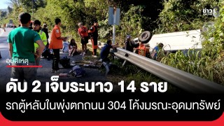 สลด! รถตู้หลับในพุ่งตกถนนสาย 304 โค้งมรณะอุดมทรัพย์ ดับ 2 เจ็บระนาว...