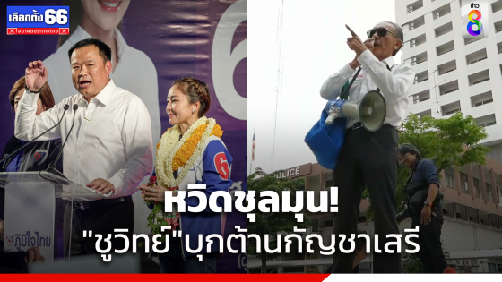"ชูวิทย์" บุกป่วนเวทีปราศรัยดินแดงช่วง"อนุทิน"ขึ้นเวที ตะโกนลั่นกัญชามอมเมาเยาวชน สุดท้ายเข้าไม่ได้ กองเชียร์ 2 ฝั่งสกัดกันวุ่น
