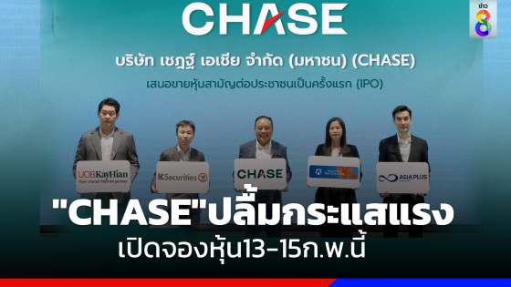 CHASE ปลื้มกระแสแรง นักลงทุนสถาบันและรายย่อยให้ความสนใจล้นหลาม แต่งตั้งผู้จัดการการจัดจำหน่าย เคาะไอพีโอ 2.90 บาท/หุ้น จอง 13-15 กุมภาพันธ์ นี้