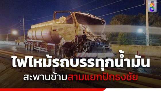 ระทึกกลางดึก! ไฟไหม้รถบรรทุกน้ำมัน 4.4 หมื่นลิตร วอดทั้งคัน คนขับรอดหวุดหวิด
