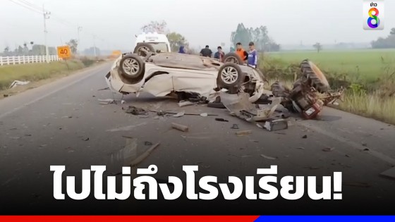 ไปไม่ถึงโรงเรียน! ครูหนุ่มขับเก๋งชนท้ายอีแต๋น-ไถลชนกระบะสวนเลน ดับคาที่ คู่กรณีเจ็บเล็กน้อยอีก 2 ราย